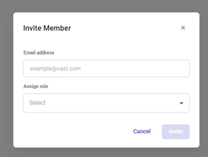To invite a team member, go to the Members Page and click on the Invite button. This will bring up a popup where you can enter the email and team role for the person you want to invite. Once complete, click Invite to send the invitation email.